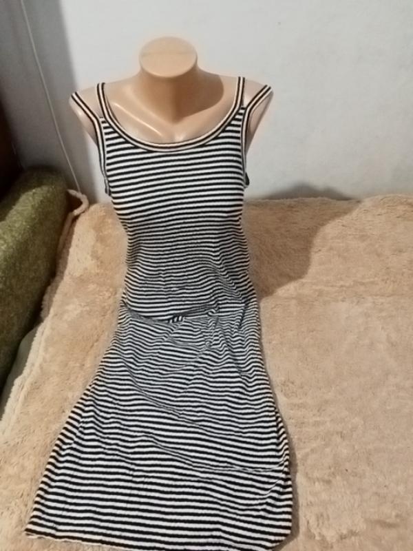 класна сукня в ідеальному стані,має дуже цікаві бретелі. НОГ 56см НОТ 46см нОБ 53см довжина 105см По бірочкі розмір 52-54 Тканина: котон 96% та еластан 4%