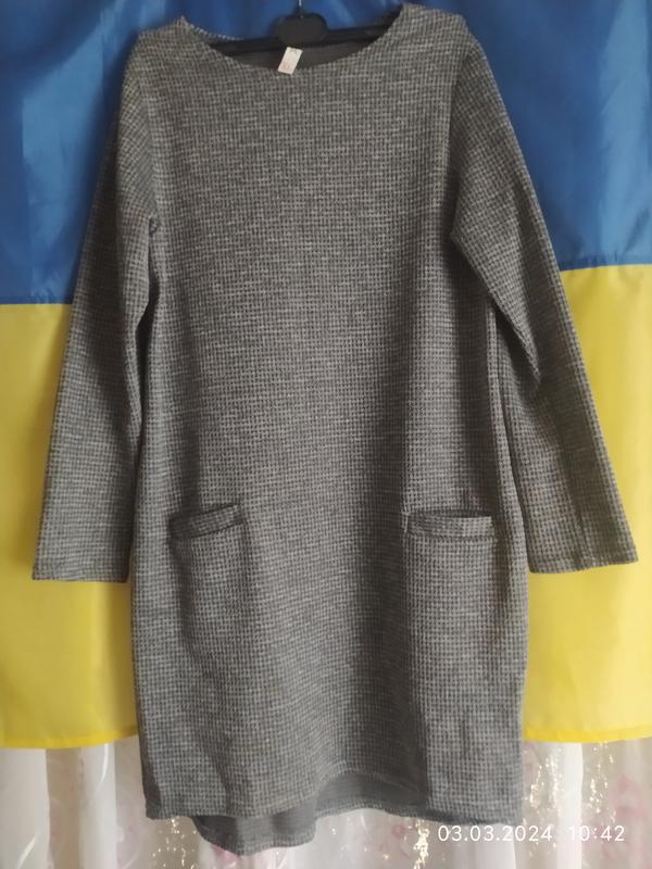 Не секонд. Розмір 48-50. Довжина: 94 см. ОГ: 100, ОТ: 98, ОБ: 110. Має два кармани спереду. Сукня ззаду трішки подовжена.