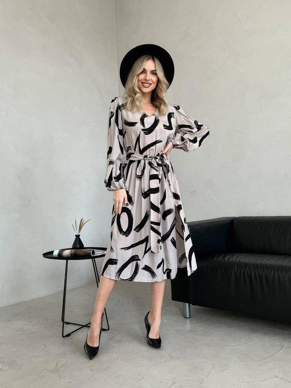 Сукня. Модель 288/1 Розмір: 42-44, 46-48, 50-52. Тканина: штапель. Ціна: 1000грн Довжина міді, талія та рукава на резинці, пояс йде окремо, не пришитий .