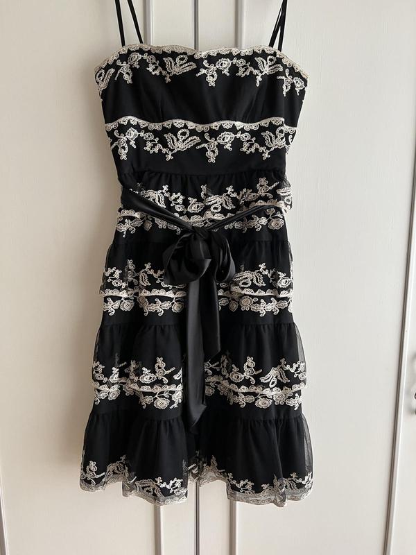 Вишивка по фатіну з широким атласним поясом, ззаду на блискавці. Розмір 08 - S НОГ 45 см НОТ 36 см Довжина 100 см sv32