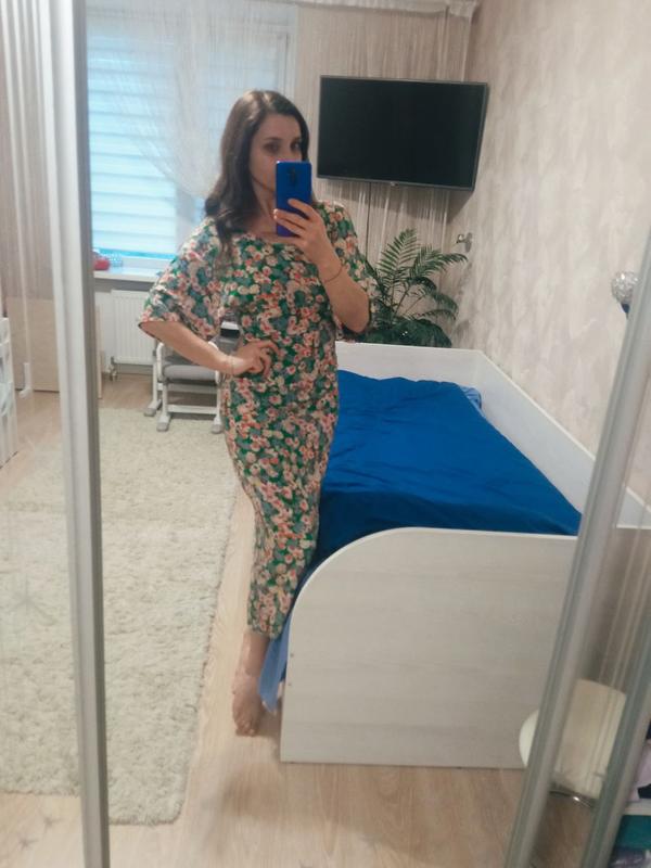Дуже гарна сукня , тканина віскоза, ззаду потайний замок , виріз мисом. Розмір 42-44. Довжина від плеча- 123, підмишками - 47, талія-35 , бедра-49-50. Тканина трішки тягнеться. Шилася під замовлення.