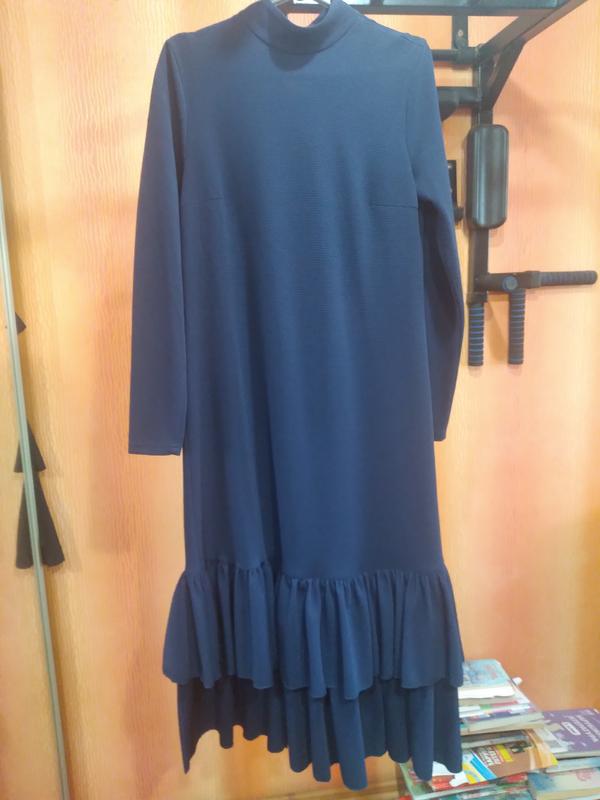 Платье синего цвета украинский бренд ГЕПЮР Размер М. Очень оригинальный фасон. Низ платья -двойной широкий волан. Доп фото по запросу