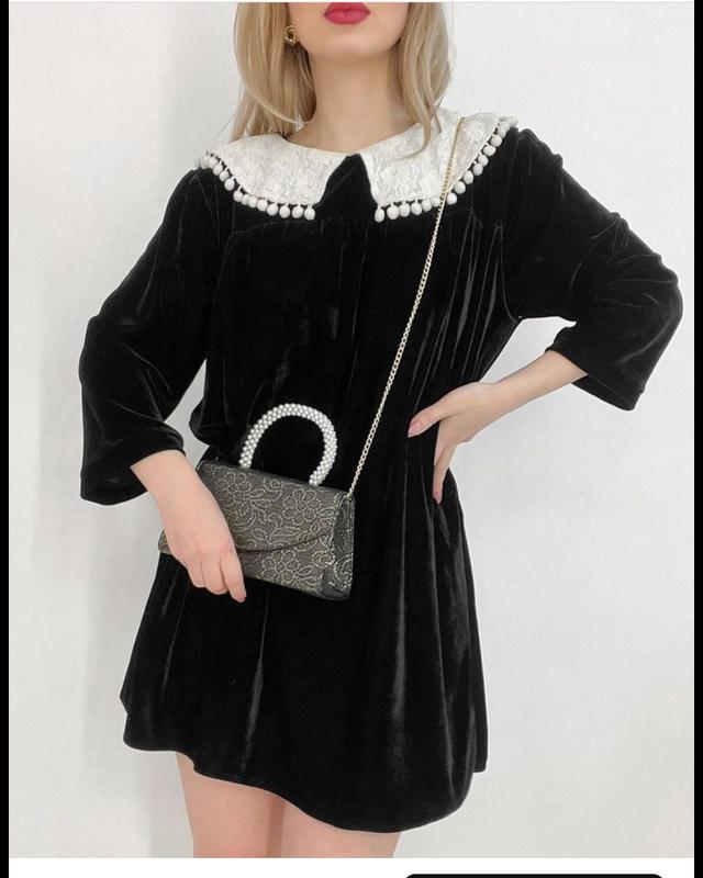 Чорна велюрова сукня з мереживним комірцем