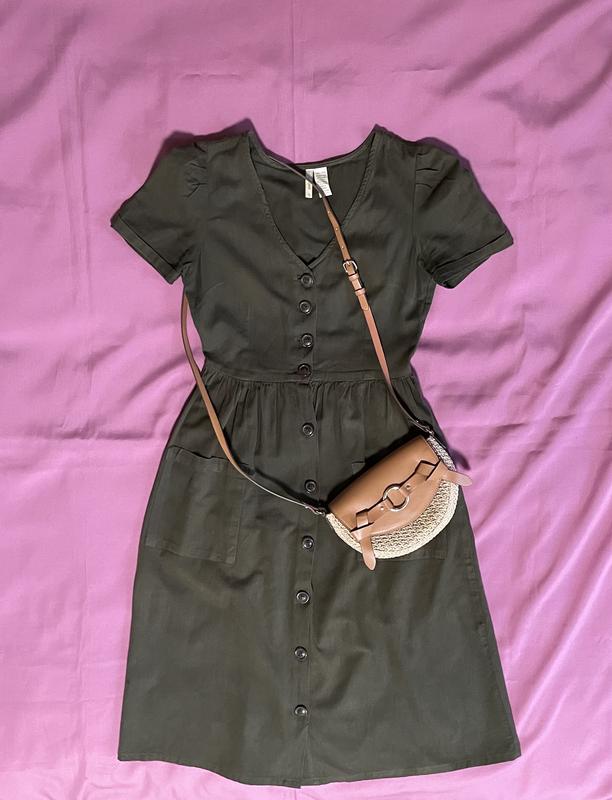 Чудова сукня з льону кольору хакі ,має дві кешені , стан відмінний