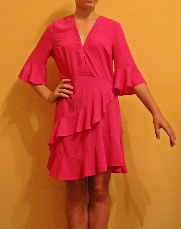 сукня рожевого кольору, стан відмінний(трохи ушивался виріз спереду) довжина -92см плечі-38см, довжина до талії 38см ПОГ-48см ПІТ-37см ПОБІДИ-53см укр, нова пошта на фото зріст 165 см йде на розмір M(на фото S-большевато) ззаду блискавка!