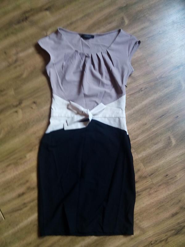 Обтягуючі сукні. Колір - кава з молоко пряжене молоко - чорний. Замочок збоку-невидимка. Попереду декор - бантик. Довжина 91см,ПОГ - 44см,ПОпояс -35см. Дуже гарно лежить на фігурі. Одягали один раз.