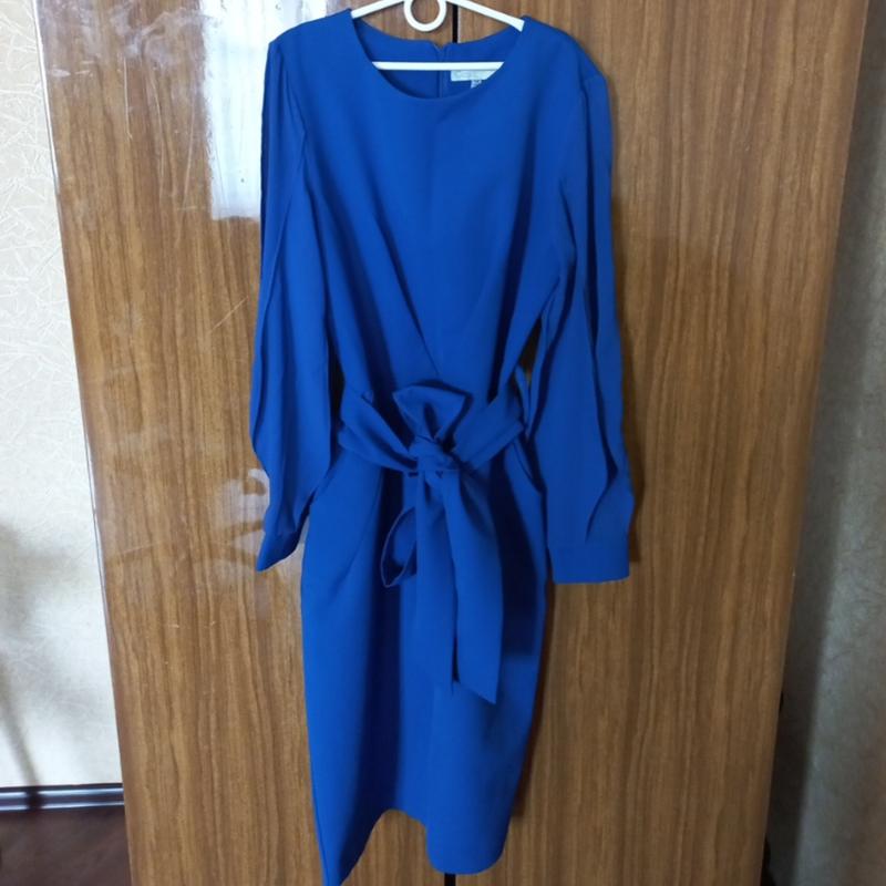 Плаття неймовірно красиво сидить по талії і зав'язується красивий бант, колір насичений синій, на фото трішки не такий. рукава сіточкою. Стан нового. Заміри: плечі напівобхват 36.5см, талія напівобхват 34см, рукав довжина з під пахви 45см, довжина по спині 102 см. На фото не можна показати красу плаття, реально дуже гарне.