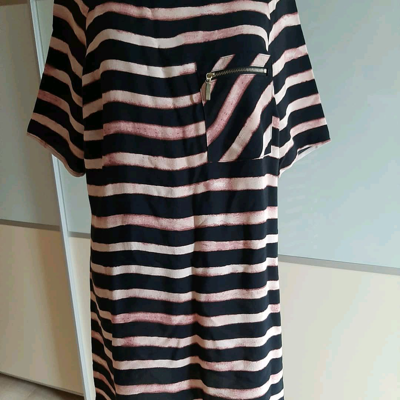 Тип одягу: Плаття Віскозне плаття в смужку, рукав реглан, внизу з боків розрізи. Пог-51 - побіди - 53, довжина сукні - 90. Сукня в ідеальному стані, без слідів шкарпетки.