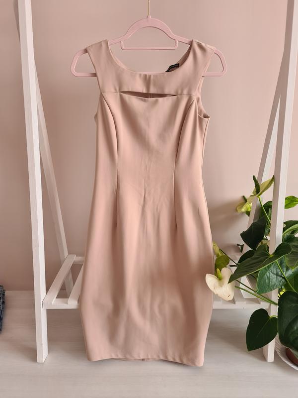 Приталена силуетна сукня. Стан нової. Колір бежевий, розмір М, можна братина С. Довжина сукні 94см, під руками ширина 39см.