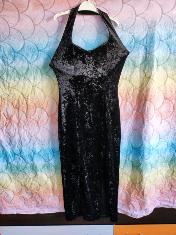 Виробник: Інший виробник Тип одягу: Плаття Шикарна велюрова вечірня сукня максі. Застібається на шиї(можна регулювати перешиваючи гудзики), на передній частині розріз,що спокусливо оголює ніжку. Розмір вказано S. Заміри ПОГ-35см, ПОТ-33см, ПОС-42см. Довжина 135см.