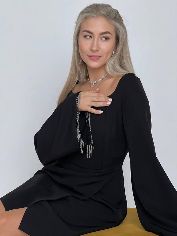 Сукня міні з бахромою чорного кольору 25678 ordio 46/48