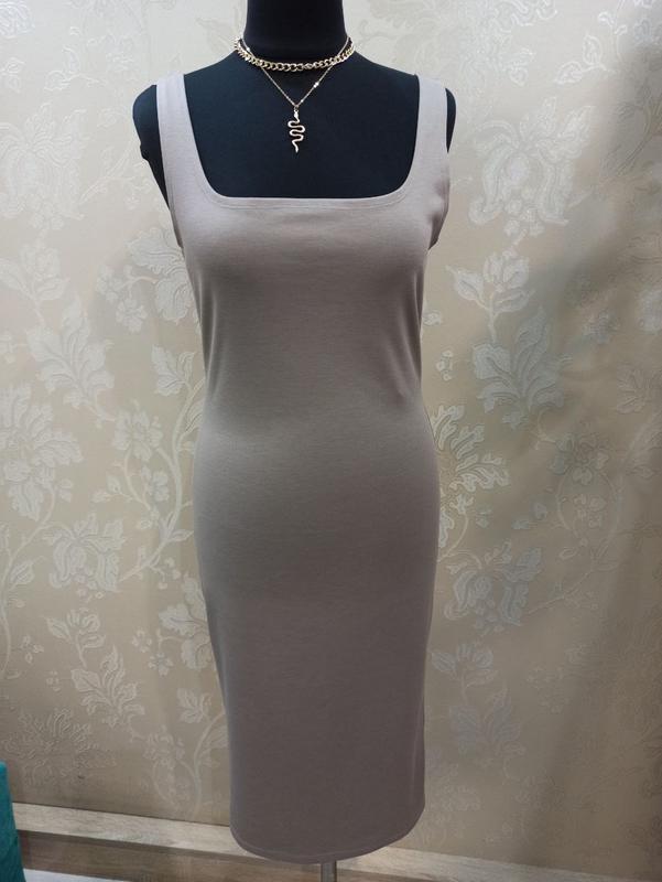 Плаття сукня міді, щильний трикотаж, на бретелях, колір мокко, Primark. Розмір С-М. Заміри: ОГ 86-94, ОБ 76-82, ОБ 92-100, довжина 103.