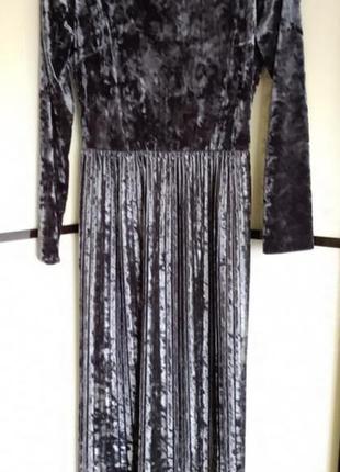 Велюровое, мягкое, удобное платье, длина -114, пог-40, пот-33, длина рукава-56, платье очень красиво тянется, юбка плиссе, за счет ткани и цвета подойдет на любую фигурку