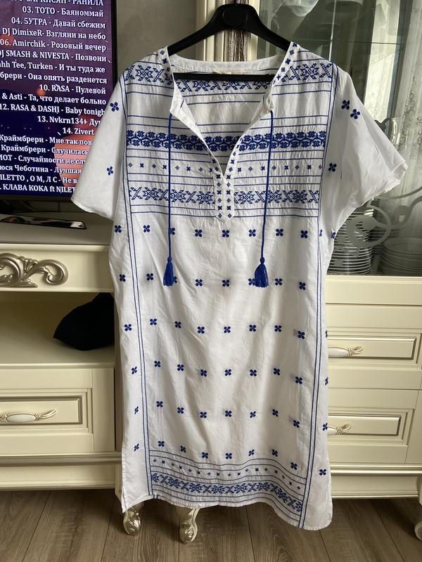Сукня в ідеальному новому стані вишиванка вручну хрестиком пог 56, довжина 102, по боках розрізи, плечі приспущені