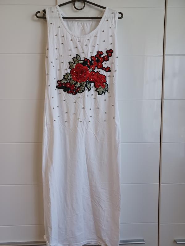 Меди платье майка платье длинный футляр вышивка цветы бусины заклепки