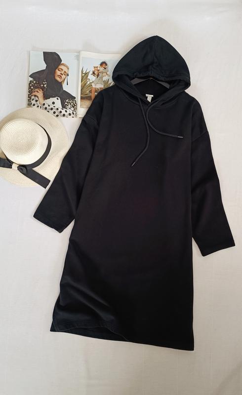🌿чорне плаття -худі H&M крою оверсайз, тканина 60% котон, 40% поліестр, є бічні кишені Розмір:L Заміри:ПО грудей 70 см, довжина 102 см, рукав від горловини 70 см