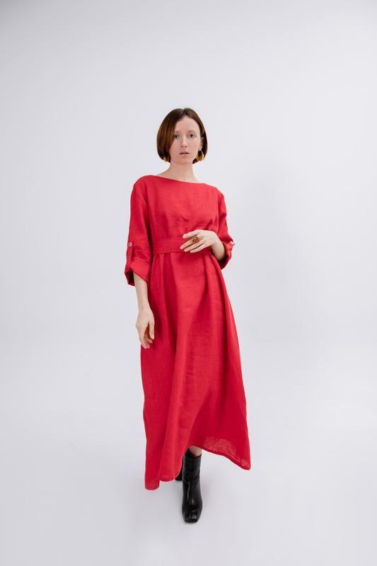 Дополнительные характеристики: Фасон : Платье - трапеция Тип ткани: Лен Цвет : Красный Узоры и принты: Без узоров и принтов Сезон: Весна Сезон: Зима Сезон: Лето Сезон: Осень Длина: Миди Стиль: Casual Стиль: Бохо Стиль: Классический Стиль: Прованс Стиль: Романтический Стиль: Этнический
