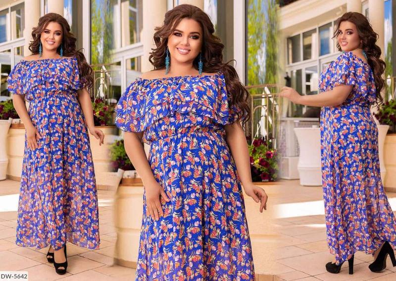 Сукня DW-5642 1215 Розмiри: 50-52 Колір: однотон : синій, бордо, тюльпани: Електрик, зелений, червоний, синій. Тканина шифон на трикотажному підкладі про-во Туреччини. Довга сукня максі створена для високих дівчат.