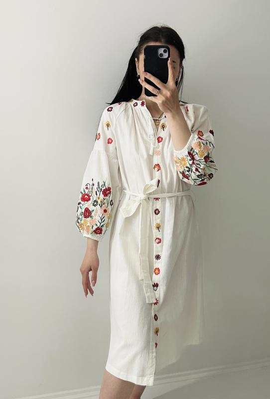 Вышитое платье, лен, не просвечивается, приятное к телу ткань, льняное. Размер С