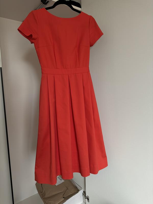 Плаття українського бренду Krisstel. Класичний крій, має приховані кишені та виріз на спині. Красивий кораловий колір. Одягалось біля 3 разів. ОТ - 33см