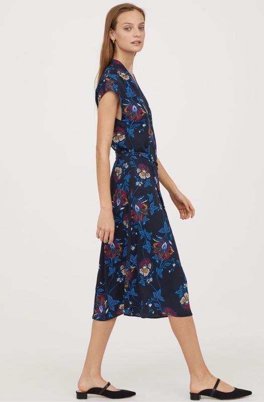 Стильна сукня-міді H&M з пояском. Розмір на бірці 40. Спереду застібається на гудзики, приховані планкою. ПОГ 48 см ПІТ 48 см ПОБ 60 см Довжина 115 см Нове, без паперової бирки. Величезний вибір блуз та сукня H&M, Zara, Reserved, Asos різних розмірів - дивіться, будь ласка, всі Мої оголошення;) Підписуйтесь – часте поповнення асортименту!) Склад: Поліестр