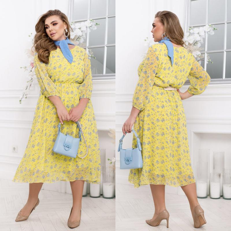 Ніжна та витончена шифонова сукня🌼✅ Модель на трикотажній підкладці❣️з відрізною талією, на гумці💫горловина округла💓спідниця вільна 💕рукави прозорі, довжиною 3/4, знизу на гумці💯 Пояс входить у комплект🎀 Мод: 2448ЮР 💵Цiна: 1130 грн Розміри: 46-48, 50-52, 54-56, 58-60, 62-64, 66-68 Тканина: шифон, трикотажна підкладка Кольори: блакитний, кремовий, бузковий, чорний/рожевий, синій/рожевий, зелений/чорний, жовтий, темно-синій. Виміри: • 46-48: довжина сукні 119см, довжина рукава від плечового шва 46см, обхват рукава 40см, ОГ - 100/104см, ОТ -72/110см, OC -154см. • 50-52: довжина сукні 120см, довжина рукава від плечового шва 47см, обхват рукава 42см, ОГ - 108/112см, ОТ -80/118см, OC -162см. • 54-56: довжина сукні 121см, довжина рукава від плечового шва 48см, обхват рукава 44см, ОГ - 116/120см, ОТ -88/126см, OC -170см. • 58-60: довжина сукні 122см, довжина рукава від плечового шва 49см, обхват рукава 46см, ОГ - 124/128см, ОТ -96/134см, OC -178см. • 62-64: довжина сукні 123см, довжина рукава від плечового шва 50см, обхват рукава 48см, ОГ - 132/136см, ОТ -104/142см, OC -186см. • 66-68: довжина сукні 124см, довжина рукава від плечового шва 51см, обхват рукава 50см, ОГ - 140/144см, ОТ -112/150см, OC -194см. Накладений платіж по перед оплаті 150 грн