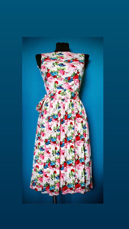 Сукня літня з квітковим принтом Нижня частина на бавовняній підкладці; ззаду потаємна змійка; знімний пояс у комплекті. Стан: ідеальний, має стан не вживаної речі Розмір: S Длина - 102 см; Полуобхват по груди 44 см; Полуобхват талии 36 см; Высота верхней части до юбки 44 см; Объем проймы 45 см; Длина плеча 9,5 см; Тканина: штапель Колір: різнокольоровий
