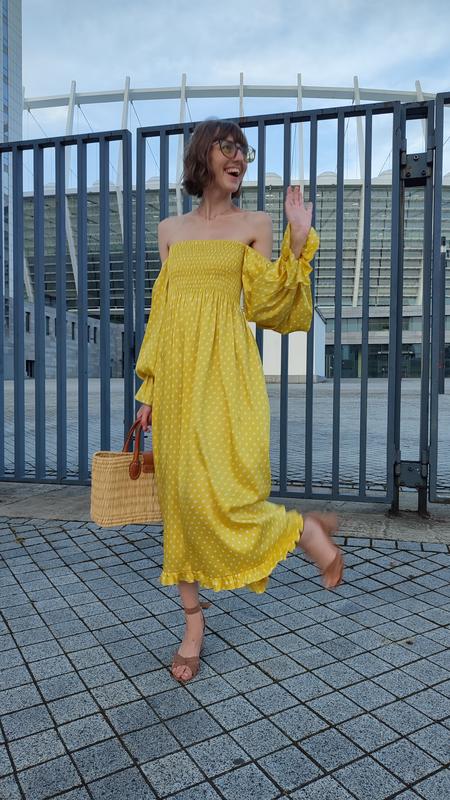 Сукня із штучного шовку. Верх сукні на резинці, по низу невеликий рюш. Розмір С-М Зшита на замовлення, одягалась кілька разів
