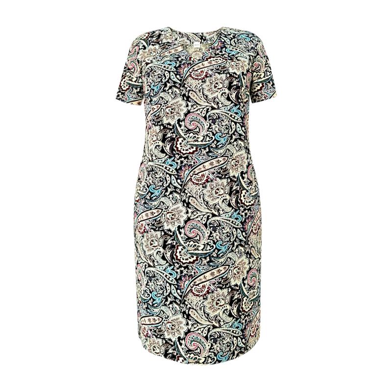 Бавовняна сукня з модним і стильним принтом « пейслі », який є символом життя та родючості. Спокійні, класичні відтінки для самодостатніх жінок. Такий колір чудово підходить і блондинкам, і брюнеткам. Абсолютно літне платтячко (80% котон, 20% віскоза). Супер - приємне і комфортне, не вибагливе в догляді, машинне прання. Якісна тканина, не втрачає колір, за рахунок віскози у складі, мало зминається. Прямий силует. Виточки на грудях . Дуже гарно «сідає» на будь – яку фігуру. І кишеньки має, для зручності. Якість – топ! З підборами – на роботу, з кросівками – на прогулянку. Розміри – 48, 54, 56. Ці речі - дизайнерські, виготовлені обмеженою кількістю і мають відмінну якість. ВИМІРИ: (Розтяжність – до 2 см.) розмір 48 (L) Напівобхват грудей – 51 см. Напівобхват талії - 49 см. Напівобхват стегон – 53 см. Довжина рукава (від горловини) - 31 см. Напівобхват рукава (біцепс) – 18 см. Довжина по переду (від лінії плеча) - 101 см. Довжина по спинці – 97 см. розмір 54 (3XL) Напівобхват грудей – 57,5 см. Напівобхват талії – 56 см. Напівобхват стегон – 60 см. Довжина рукава (від горловини) – 34 см. Напівобхват рукава (біцепс) – 20,5 см. Довжина по переду (від лінії плеча) - 109 см. Довжина по спинці – 103 см. розмір 56 (4XL) Напівобхват грудей – 59,5 см. Напівобхват талії – 58 см. Напівобхват стегон – 62 см. Довжина рукава (від горловини) – 35 см. Напівобхват рукава (біцепс) – 21,5 см Довжина по переду (від лінії плеча) - 111 см. Довжина по спинці - 105 см.