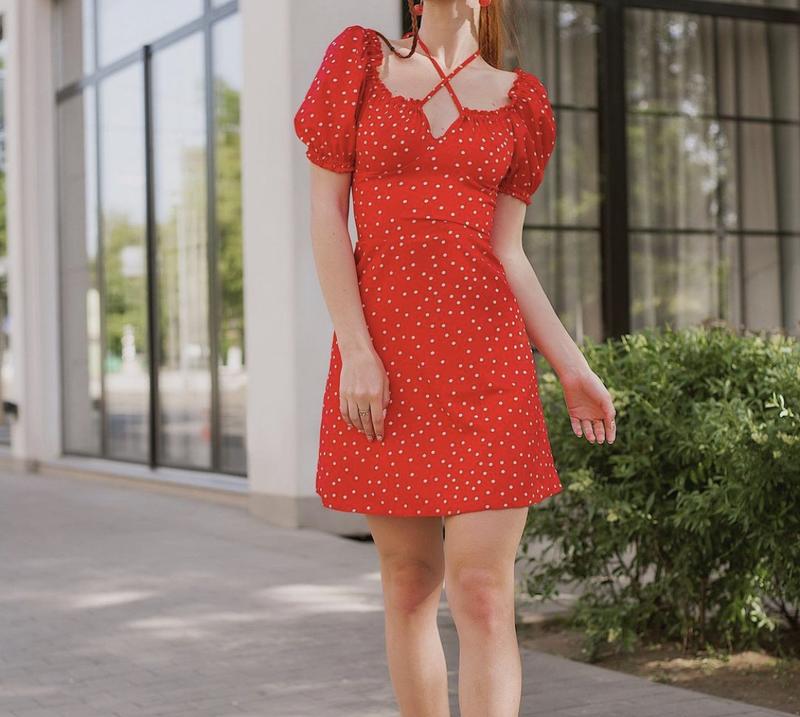 Сукня нова, довжина виробу 87 см, на розмір S Сукню можна моделювати: мотузочки розташовані в районі грудей, можна зав’язати бантиком або зробити виріз декольте глибшим. Ззаду шнурівка, яка регулює приталеність.