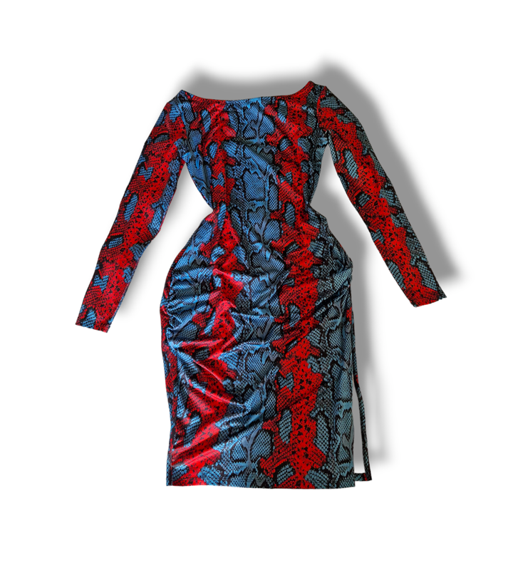 Нова червоно-синя сукня У зміїний принт З довгими рукавами Розмір: М