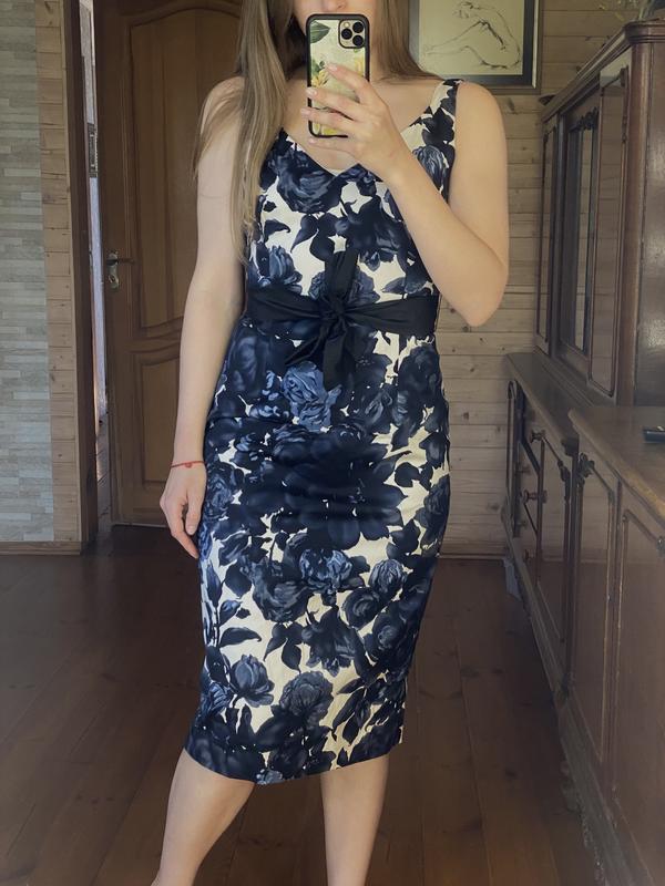 Пояс із шовку ,сама сукня із бавовни .Е підклад .Заміри .Довжина 104 см .Груди 45/49.талія 37/40 можно регулювати поясом .Бндра 47/52.Одягнена на розмір с