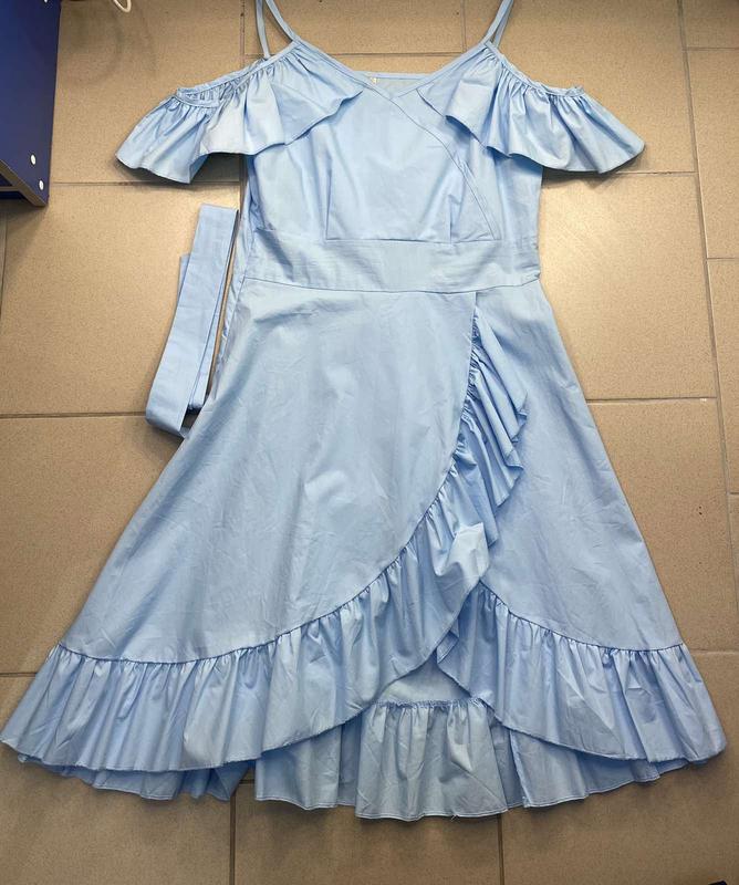 Изысканное женское голубое платье на бретелях и с поясом размер l-46