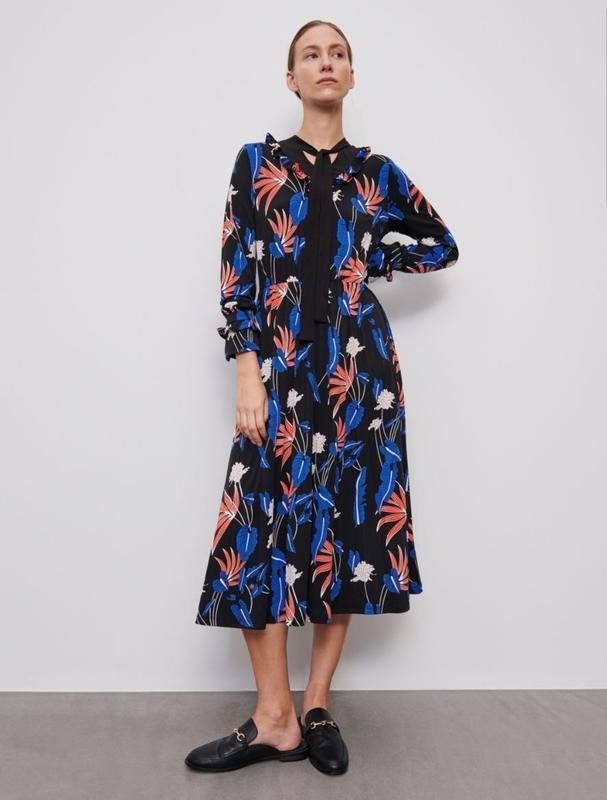 Стильне міді плаття Reserved з оборками та зав'язками на горловині. В наявності розмір 36. Тканина добре тягнеться. ПОГ 44 см ПОТ 35 см, на гумці ПОС вільно, приблизно 68 см Довжина 111 см Рукав 61 см Ширина в плечах 37,5 см Дивіться, будь ласка, всі мої оголошення — величезний вибір платтів і блуз H&M, Zara, Mango, Asos, Reserved https://shafa.ua/member/taniahor Підписуйтесь — часте поповнення асортименту!)