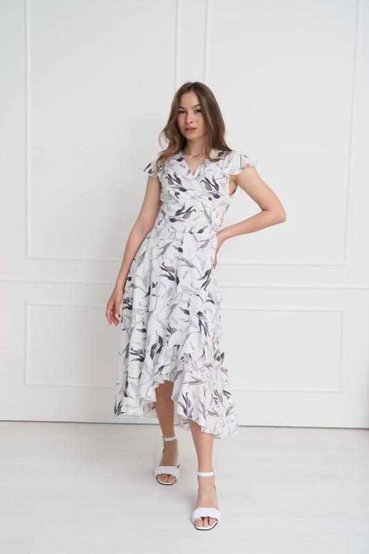 Сукня міді з натуральної тканини Софт М'яка та приємна на дотик ідеально для літнього сезону. Гарно підійде на будь-який тип фігури.🌹 Тканина принтована: біла з принтом, горошок, темна з квітковим принтом ▪️ Тканина: Софт ▪️ Склад тканини: 70 % бавовна, 30 % полієстер ▪️ Сукня на запах, спідниця розширена до низу, низ спідниці оброблено воланом , на талії фіксується паском ▪️Розміри: S, M, L