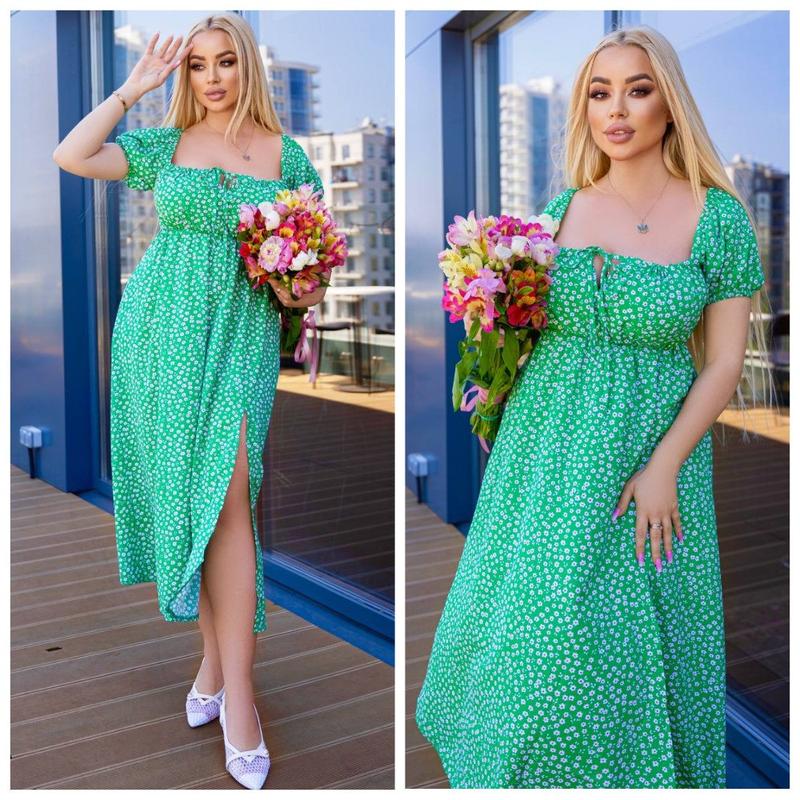 Елегантна літня жіноча сукня міді в квітковий принт великих розмірів, докладає стиль і комфорт для жінок великих розмірів. Середньої довжини, вона прикрашена яскравим квітковим принтом і має короткі рукави, що підкреслює її літню свіжість. Гумка під грудьми не тільки надає сукні витонченого силуету, а й забезпечує додатковий комфорт. Виготовлена з м'якої тканини, вона обіцяє залишатися приємною на тілі протягом усього дня. Тканина Софт Розміри: 42-46,48-52,54-58