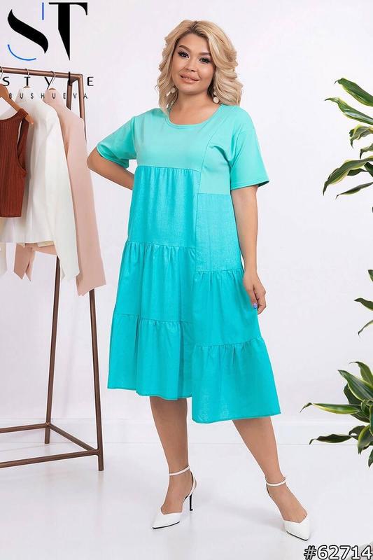 ПЛАТЬЕ 🔥🔥🔥 ХИТ Платье модель 8891 Цена - 1350 грн Размеры - 48-50,52,54 название изделия - платья Материал изделия : дайвинг + лён код товара - 8891 цвет товара: коралл, електрик, мята, т синий Замеры изделия : 48-50- длина 97/108 см рукав 16/12 см грудь 108 см, талия : 118 см бедра 136 см 52- длина 102/110 см рукав - 17/13 см, грудь- 110 см .талия 120, бёдра 138 см 54- длина 103/111 см рукав 18/14 см, грудь 114 см талия 122 бёдра 148 см