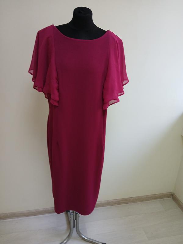 Сукня футляр, з костюмної тканини, рукав пелерина з шифону переходить на спинку, подвійний шар шифону, ідеально прикриває руку і в той же час дає повноцінно дихати тілу, ідеально лягає по фігурі, стан нове, додаткові фото, виміри на запит