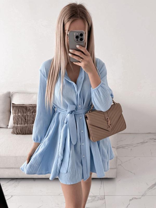 НОВИНКА Сукня 🎀 Мод.208shop Цвета: нежная пудра, голубой, беж Размеры: 42-44, 44-46 Ткань: натуральный муслин Рост модели 1,60 см Легкое летнее платье из муслина, застежка на пуговицы + поясок, воротник - стойка. Рукава длиной 3/4, по низу тонкая резинка. Использованы нежные оттенки, которые будут прекрасно выглядеть летом🍭