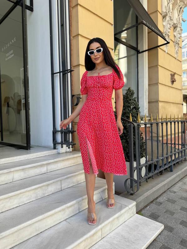 Літня сукня Тканина:софт Дуже приємна до тіла,не зминається Ззаду по спинці прострочена резинка,що дає змогу легко одягнути сукню Кольори: червоний, блакитний, зелений, чорний-листочки молочний, чорний-квіточки Розмір:42,44,46,48 юч