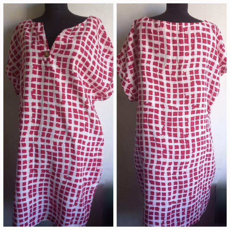 Сукня оверсайз прямого крою Розмір 18 100% льон Заміри: плечі +- 50см, груди 63см, стегна 63см Довжина виробу 100см Стан нового, не носилась. Паперові Бірки відсутні.