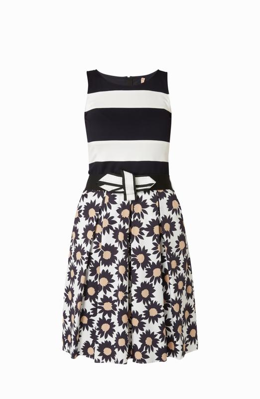 Элегантное летнее платье от премиального немецкого бренда MARC CAIN, размер N 2. Силуэт платья безупречный: к талии приталенное, перед и спинка трикотаж, в широкую полоску белого/ темной цвета, юбка расклешенная за счет встречных складок. Платье имеет стрейчевый пояс, застегивается изнутри на 4 больших кнопки, спереди образует красивый бант. Юбка платья имеет два боковых прорезных кармана. Застегивается платье сзади на молнию. Состояние отличное, дефекты отсутствуют. Качественная ткань, отличный пошив на уровне бренда MARC CAIN, оригинальный дизайн, элегантность и изысканность платья придаст очарование каждой женщине. Объем в груди - 82-84 см, объем талии - 74 см, объем бедер - 98 см, длина -96 см.