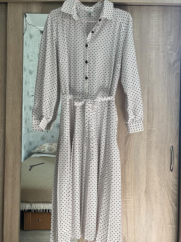 Поліестр, але якісний. Верх на ґудзиках, низ - в складочку, з підкладом. Пояс, карманів немає. Ог-53см, довжина-115. Застібається додатково на бокову блискавку. Приємний бонус- майже не зминається