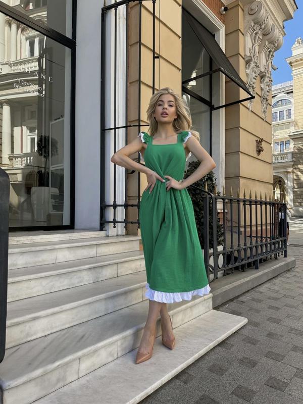 Новинка 🌷🌷🌷 Модель - 402 Тканина-муслін Оборка-штапель Кольори - зелений, бузковий Розміри – 42-44; 46-48 Ціна - 720 грн Неймовірний сарафан у трендових кольорах , виконаний з натуральної тканини Муслін, не парить, легка, повітряна. Зробить комфортними ваші літні прогулянки.