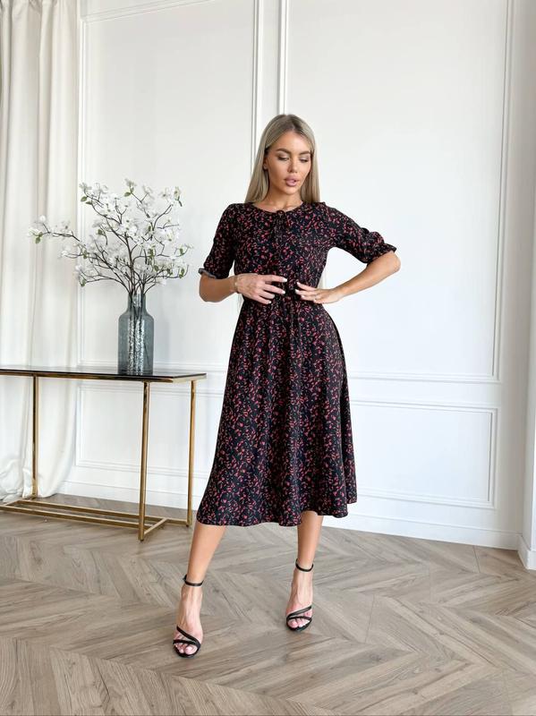 DaNi Модель 301 kot Размерный ряд S,M,L,XL Цвета: черный с красным Очень красивое и женское платье из легкого софта, приятное к телу, не колется Рукава и талия на резиночке, за счет чего идеально садится по фигуре Небольшой разрез на груди регулируется завязками Тканина софт Длина изделия 116 см Супер качество Цена 770 грн