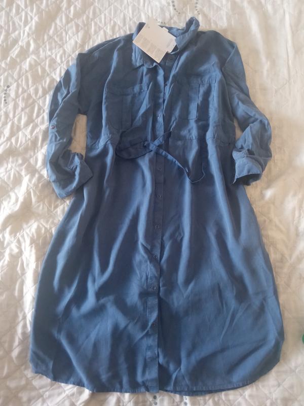 Платье рубашка в идеальном состоянии из лиоцелла. С бирками. Цвет джинс. Ширина регулируется. По бокам карманы.Рукав делается короче с помощью шлейки. Единственный нюанс, кнопки. их надо заменить. Слабо закреплены, но все на месте. В цене учтено. Ориентируйтесь по замерам. На размер 52 сидит идеально. ПОГ 60 см, ПОБ 67см, длина 107. На все вопросы отвечу. Извините, но возврата нет