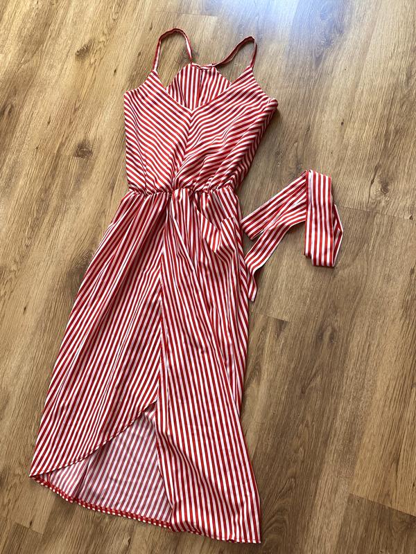 🍒сукня міді з розрізом+пояс, талія на резинці, у смужку