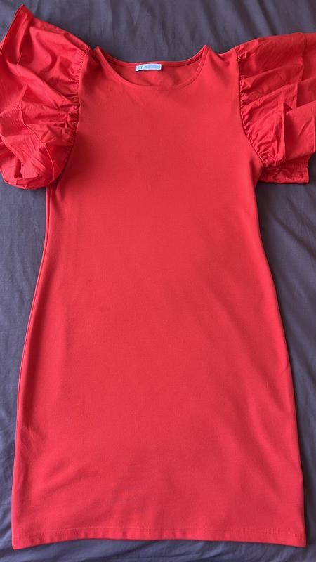 Плаття червоного кольору з пишними рукавами Zara розмір M L