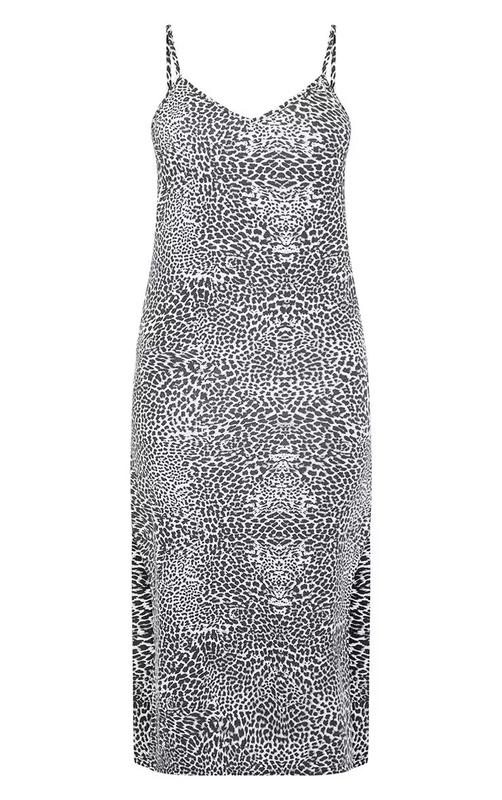 Плаття міді з розрізом та леопардовим принтом xs prettylittlething