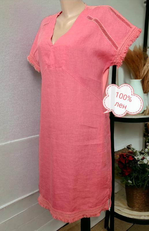Плаття лляне, вільного крою. Лінія рукава спущена, з боків внизу невеликі розрізи, бічні кишені. Розмір вказаний 38. 🌼 ПОГ 50 🌼 ПОТ 48 🌼 ПОС 52 🌼ширина по низу 57 🌼 довжина 98 Стан нового.